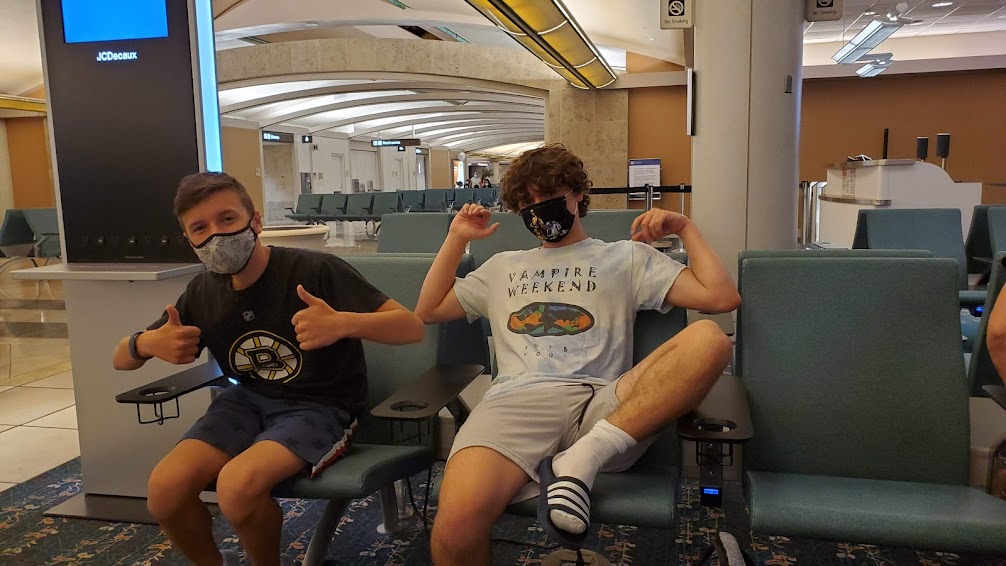 We brought our bags down and realized quickly all of us and our bags would not fit in our tiny clown car so Nickie and Owen called an Uber to bring them to the airport while I took Myles and Liam in the car. We were on the road by 4:00 AM. Our first stop was the rental car drop-off and then we took Liam to his security line to make sure he was all set for his 8:45AM flight.