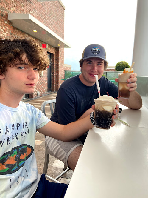 Myles came with me to get breakfast for the crew. I mean, not the flight crew or anything. I mean my family. Figure of speech.