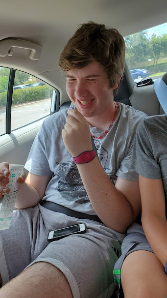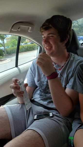 The pharmacy was about 10-15 minutes away from the park. We arrived there at around 2PM, pulled up to the drive thru window, and the pharmacist passed the kit through the little drawer. And then Liam got to it.