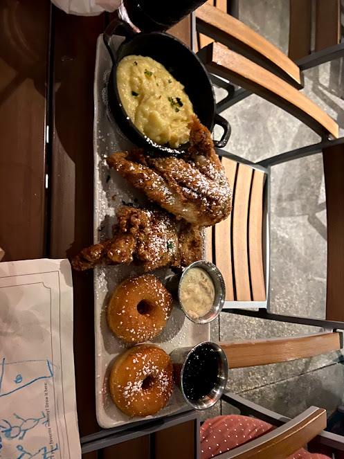 And the Fried Chicken & Doughnuts (Two pieces of Chef Art Smith’s famous fried chicken served with house-made sugar doughnuts and choice of side item) Myles and Liam split.