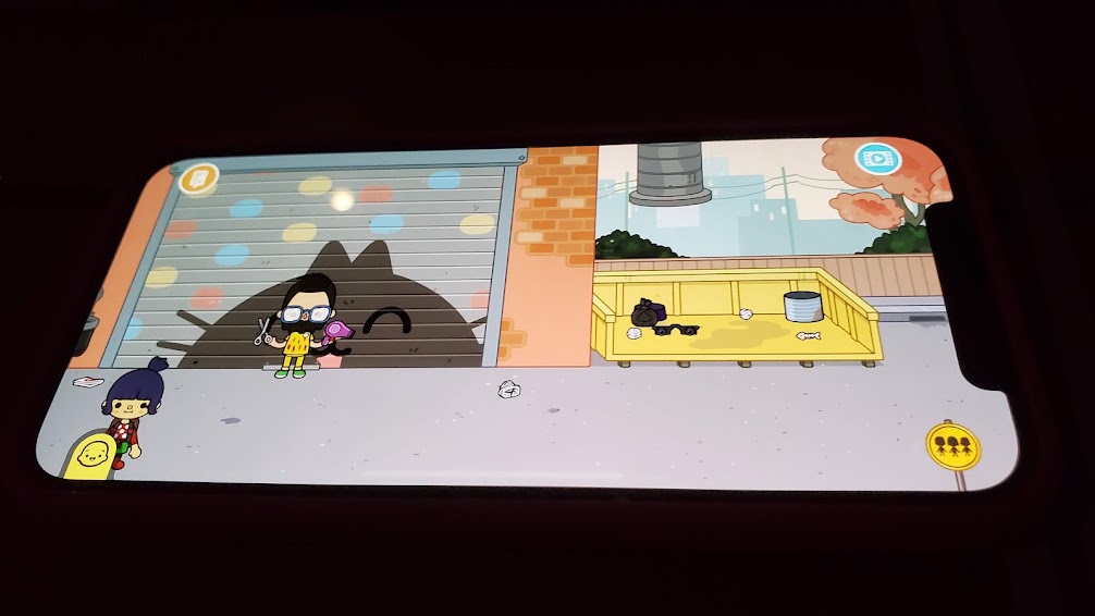 And she was playing some type of phone game called Toca Life World while we were waiting. And in her game, she created characters resembling all of us. Even me. I am up there with the scissors and hairdryer.