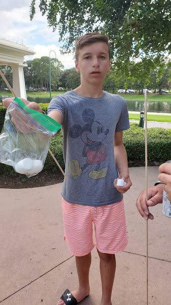 There were two cast members helping out, handing out sticks and bags of marshmallows. But still, eh. Liam was obviously having a hard time.