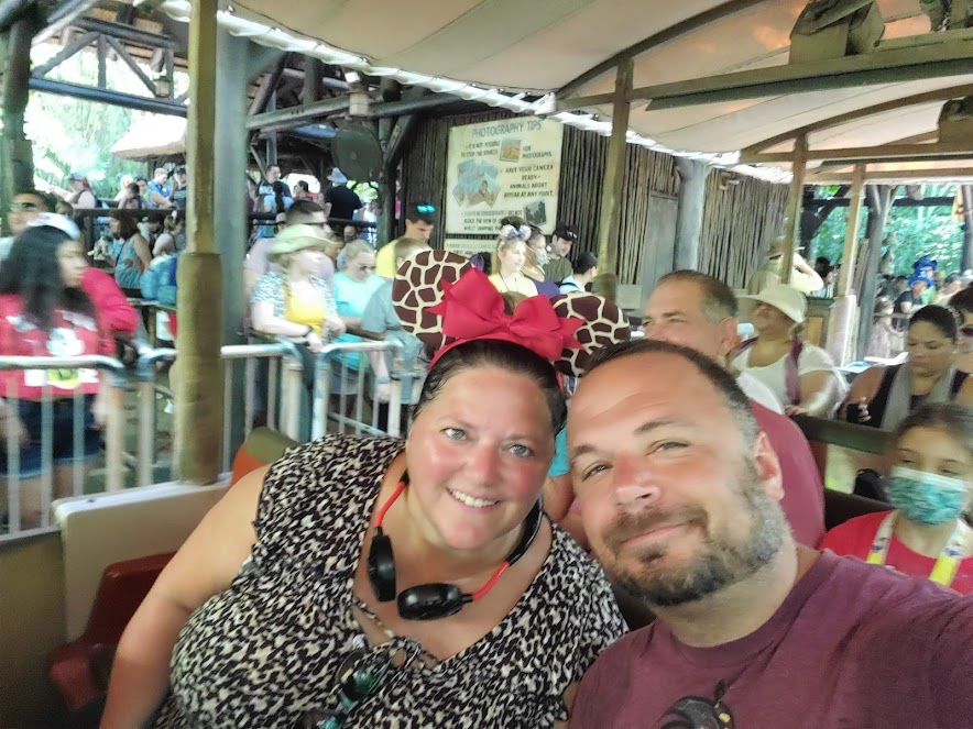 But the popcorn was certainly welcome because we had a 30-minute wait for our first attraction of the day – Kilimanjaro Safaris!