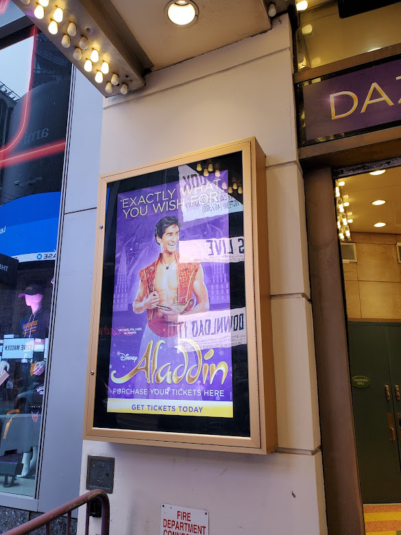 But, being that this was a Broadway show, I didn’t get any pictures during. I can say, though, the show was incredible. Genie is a standout of course and “Friend Like Me” is a legit banger. But everyone in the cast did a fantastic job. Aladdin, Jafar, and Jasmine were all wonderful. The sets were beautiful, the effects were all kinds of magical, and the music was of course best.