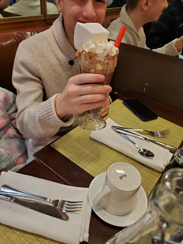 Owen, meanwhile, continued his tradition of ordering things we all know he won’t enjoy. He ordered the hot chocolate.