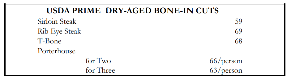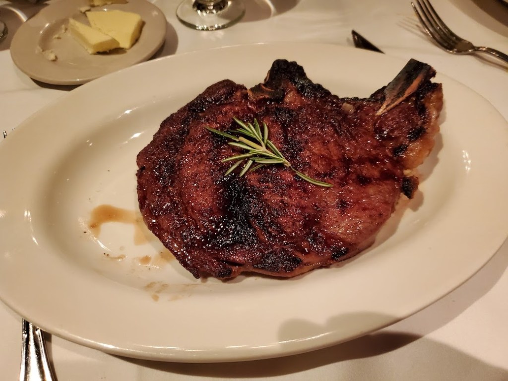 I got the rib eye. Partly because I really like rib eyes but also partly because the rib eye was located squarely in the USDA Prime Dry-Aged Bone-In Cuts section of the menu.