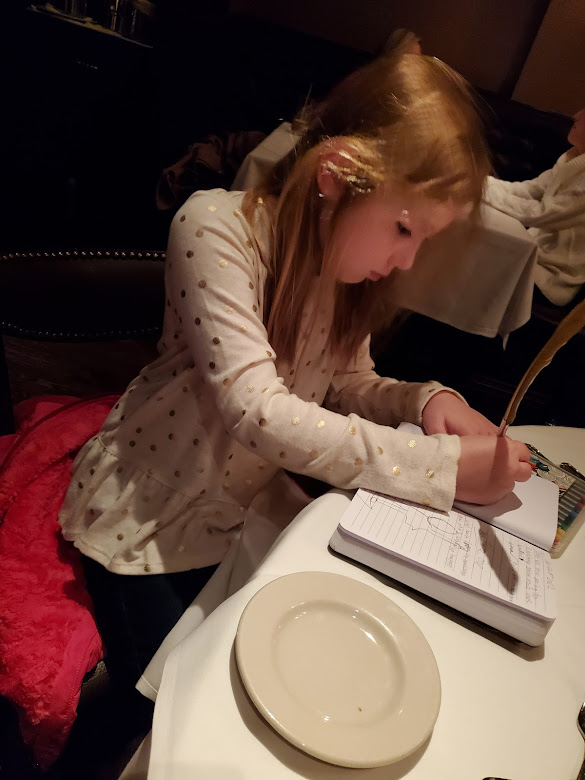While we were sitting there enjoying some bread and drinks, Mia took out her Hamilton quill and worked on her journal entries.
