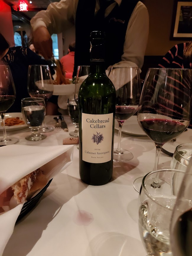 For our meal, we ordered a bottle of 2018 Cakebread Cabernet Sauvignon.