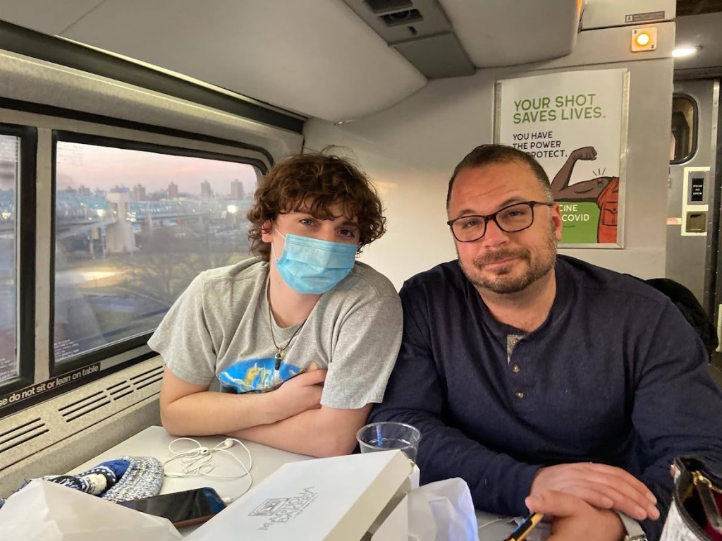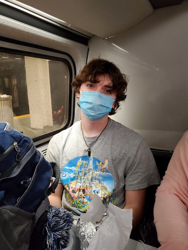 Soon after we left Magnolia with our treats in hand, we heard the announcement that our train would soon be boarding. We lined up at the escalators and within minutes, were heading down. And like I said, Myles was there. He picked up the train in New Jersey so he was on there waiting for us at a table in the café car.