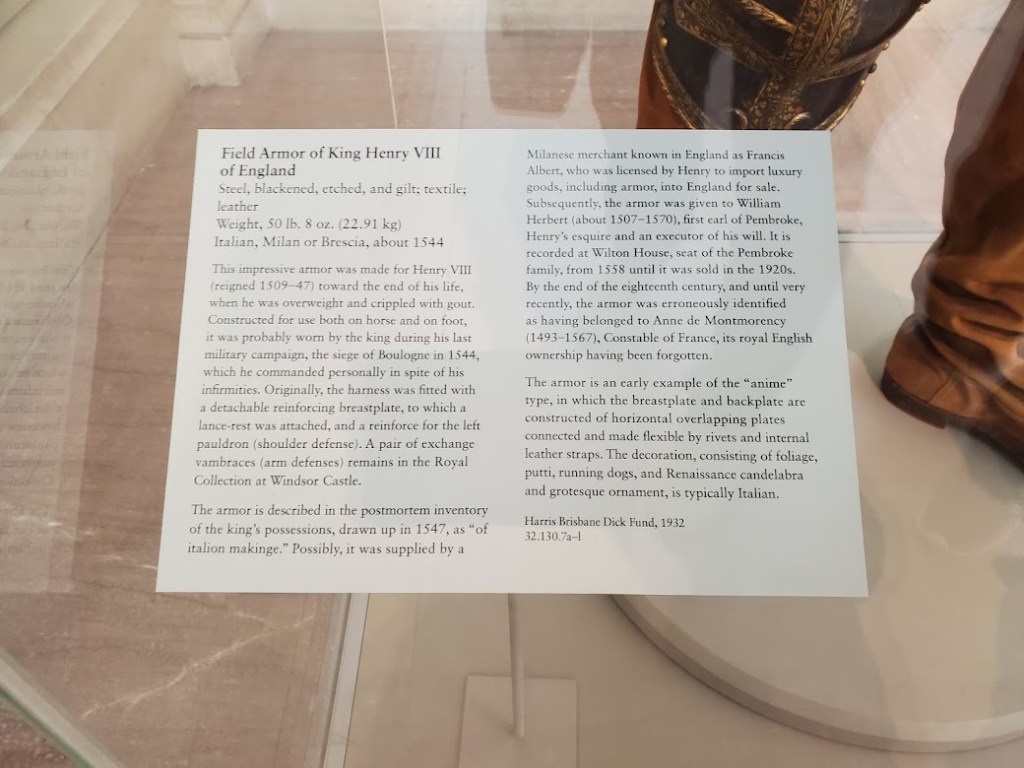 At the end of the room, they even had Henry VIII’s field armor. And also at the end of the room? They even had Owen.