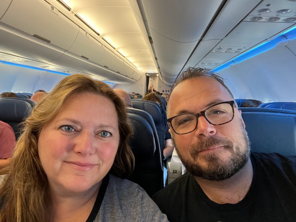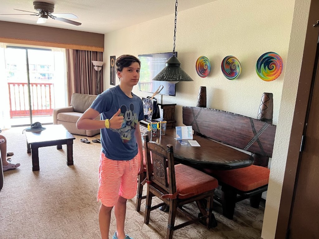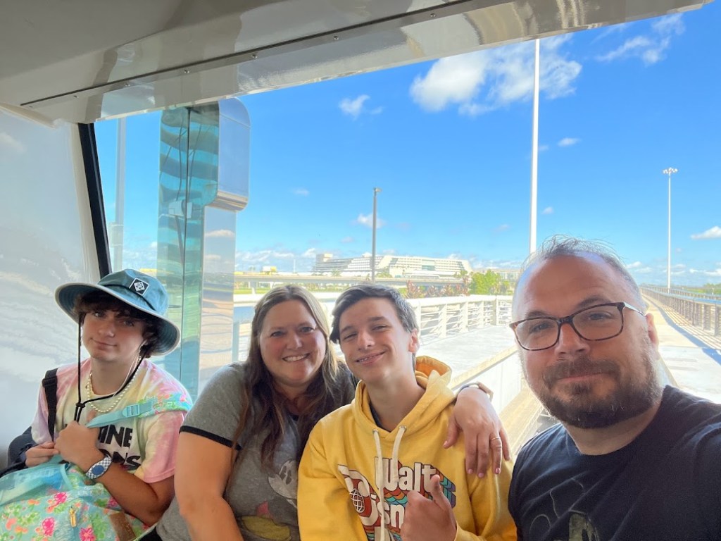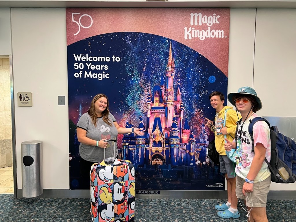 And I know. We only have two children, right? Well, in addition to Kayce, Bella, and Lani we also had someone else meeting us on this trip. Hannah, Myles’s girlfriend, was flying down from New Jersey to spend our vacation with us as well. We were meeting her at MCO, but Myles FaceTimed with her to open up their airport bags together.