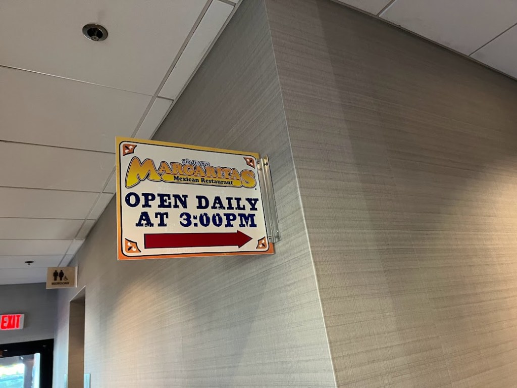 And we were treated to some ridiculousness next to us at the desk. You see, this hotel has a Margarita’s restaurant on-site. And for those that don’t know, Margarita’s is a tex-mex kind of restaurant, serves things like burritos, tacos, that sort of thing.