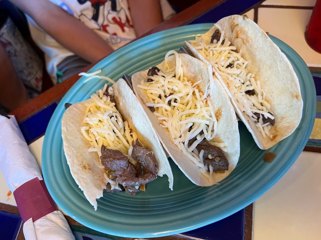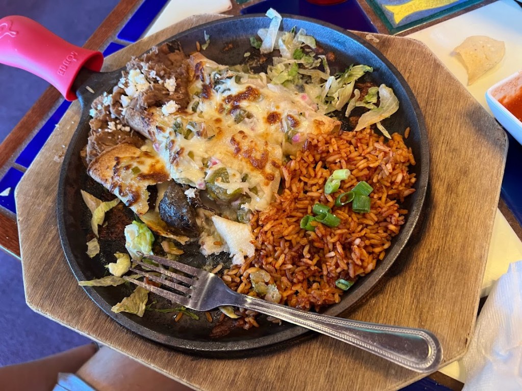Myles went with the Skillet-Baked Enchiladas, which was one steak enchilada, one chicken enchilada and one stuffed with salsa fresca. This was also served with Margarita’s house tomatillo sauce and Mexican rice and beans.