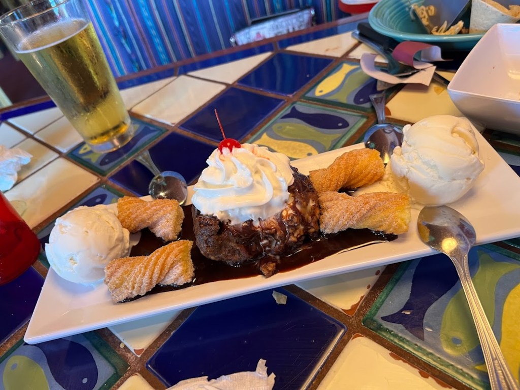And I mean, it was the first meal of the trip. So OF COURSE we ordered some dessert. We ordered a Super Grande Dessert to share. Thing had churros. Thing had fried ice cream. Thing had vanilla ice cream. And thing had chocolate sauce.