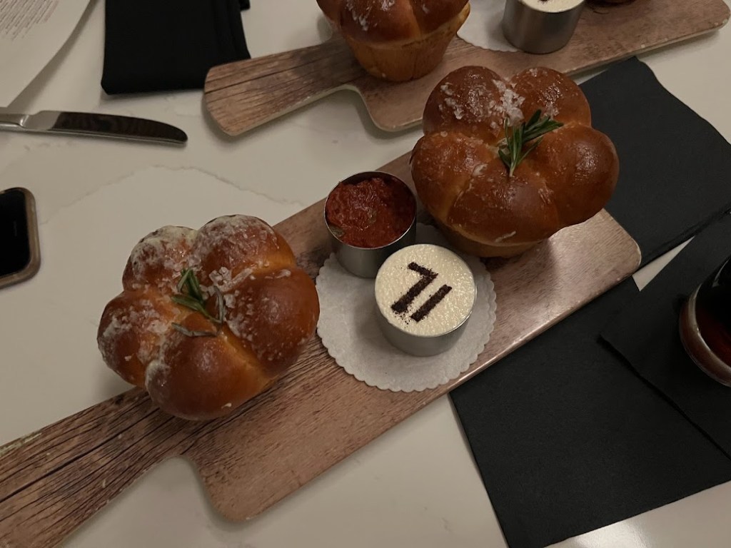 We started the meal off with a couple appetizers, including the Sea-Salt Dusted Brioche with Butter and Garlic-Tomato Spread.