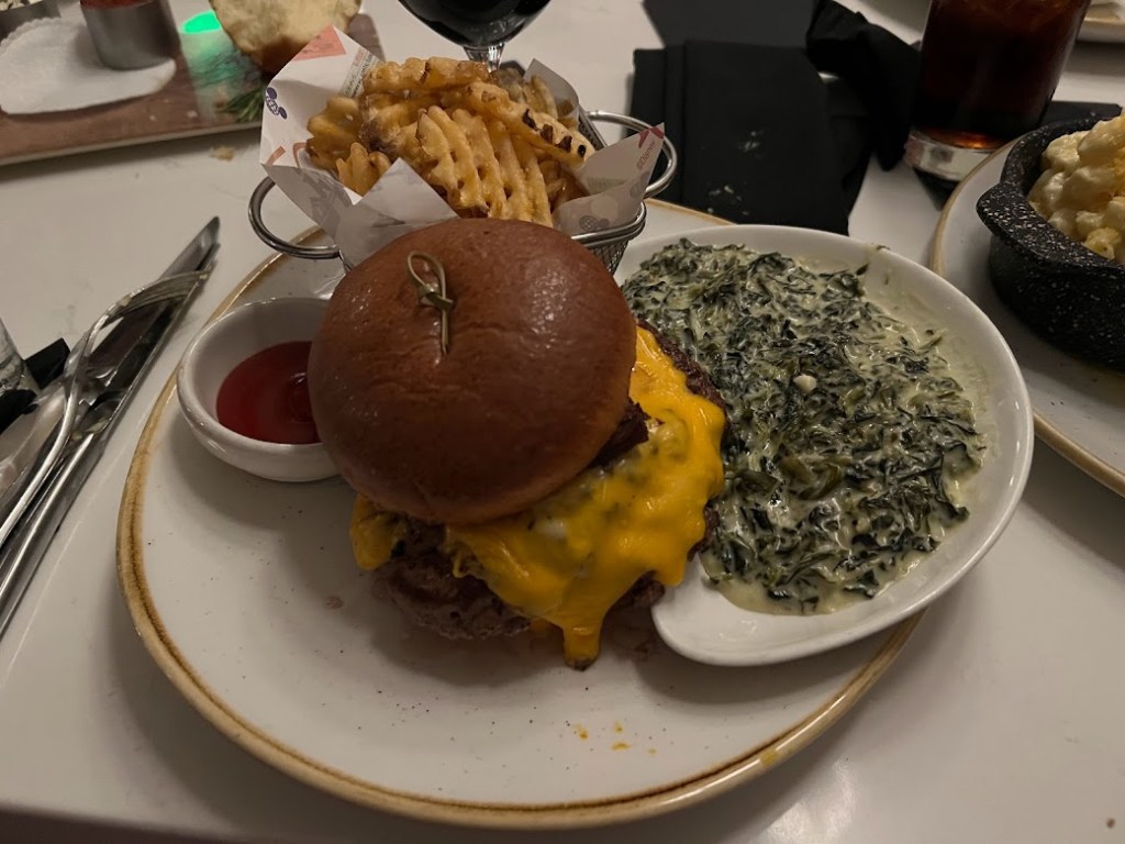 And I added an extra side of creamed spinach on top of the waffle fries it came with. Because I am a sucker for creamed spinach, man.