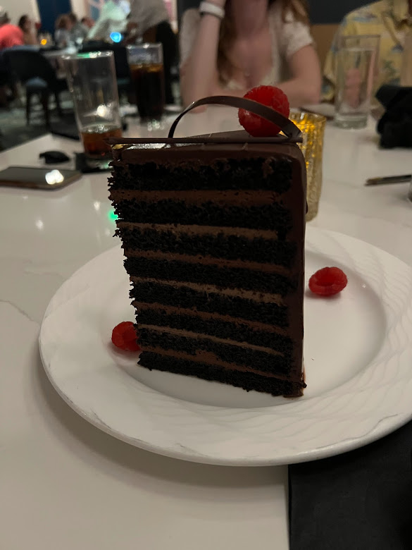 We were all pretty stuffed at this point but we still wanted to try their signature dessert. So we all split the Steakhouse 71 Chocolate Cake (15 Layers of Whiskey infused Chocolate Cake and Chocolate Mousse, served with Raspberries).