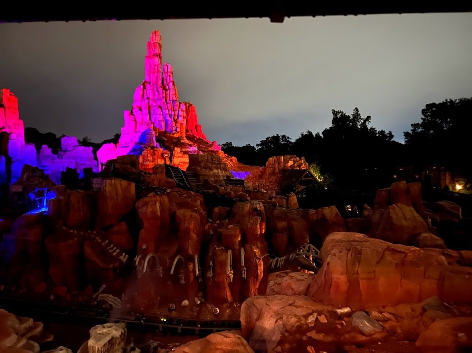 Which meant we had a little over an hour and a half of park time left. So it was time to head to the single best “that’s-better-at-night” Magic Kingdom attraction – Big Thunder Mountain Railroad.