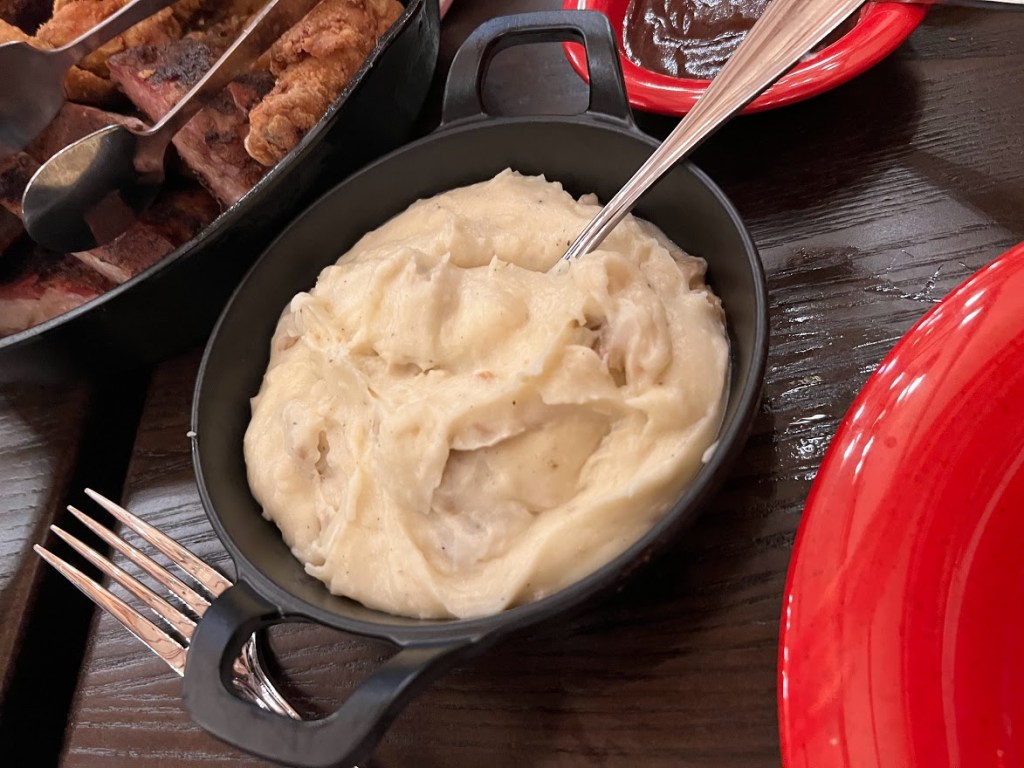 Everything was real good. It’s honestly hard to pick a favorite side between the mashed potatoes and the mac and cheese and both the ribs and chicken were delicious. Everyone else probably would agree if they had to pick, the chicken was the winner. And like, I can’t deny how yummers that chicken skin was. But overall, I think I liked the ribs the most. Super flavorful. Falling off the bone. Just real real good.