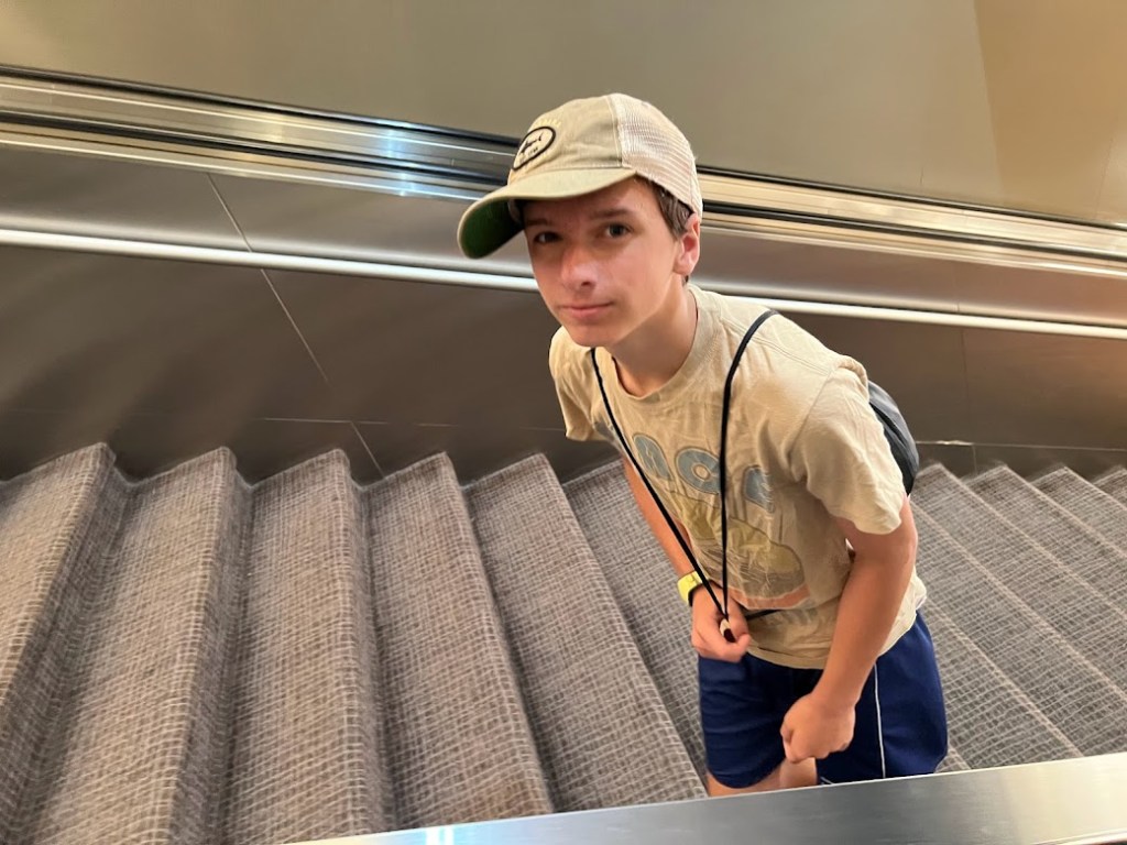 So he took the stairs. Here is a picture I took of him climbing the stairs. From the escalator.