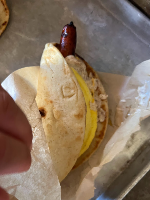 And I, along with a bunch of other people, got the Ronto Morning Wrap (Eggs, Grilled Pork Sausage, Shredded Cheddar, and Peppercorn Sauce in Pita Bread.)