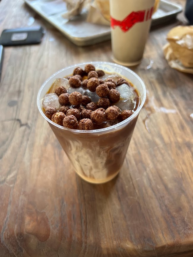 To go along with my wrap, I also took a walk over to Kat Saka’s Kettle for the non-spiked Cold Brew Black Caf (Joffrey’s Cold Brew Coffee topped with Sweet Cream Cheese and Cocoa Puffs).