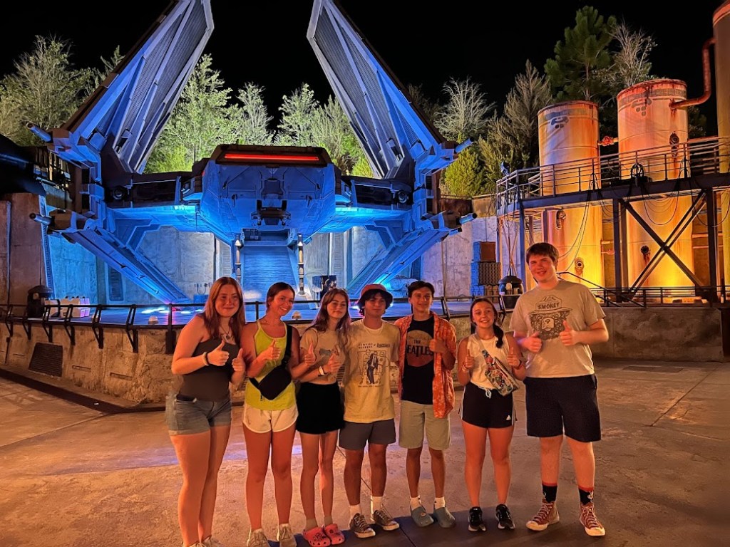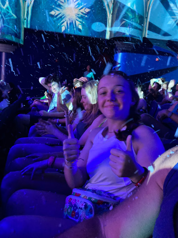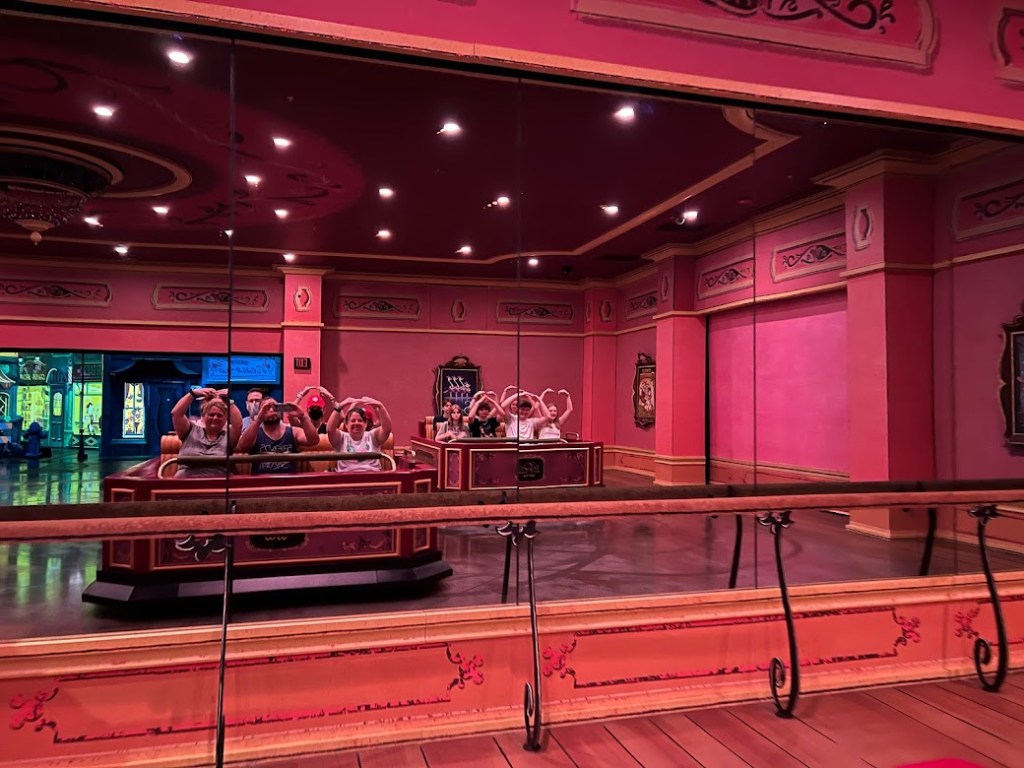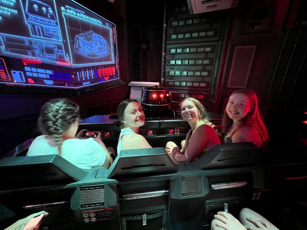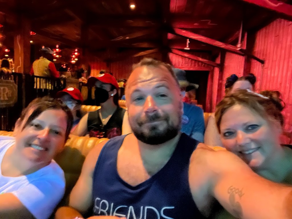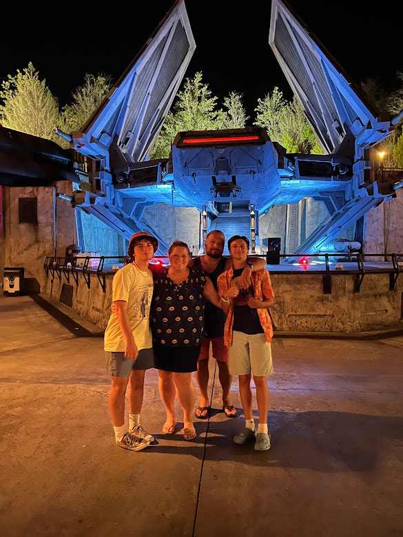 We ended up exiting the Falcon at around 8:55 and the park closed at 9:00. I let Nickie and Kayce know we were on our way but they should maybe not wait for us just in case. And they gave up quite the fight on this since they thought it wouldn’t even be fun without us and also that’s completely not true because here they are riding it without us.