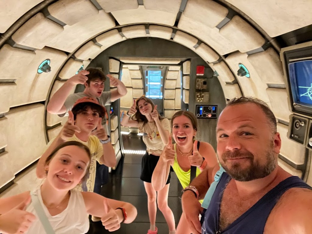 Hey, speaking of confusing things, 7AM was also an important time for the whole “planning the park” situation because today was another day we were using Genie+ and Lightning Lanes and what not. And 7AM was when we could officially make our first Lightning Lane reservation. And today? I was making Lightning Lane reservations for the five of us (me, Nickie, Myles, Owen, and Hannah) plus Kayce, Bella, and Lani plus Liam and Ayla (who as you might recall stayed over in our room the night before) PLUS Liam and Ayla’s parents – Arty and Suzanne – who were also meeting us at the park today.