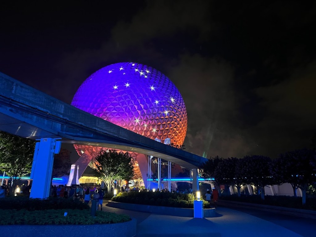 We were at the park by 9:20ish and I mean. EPCOT at night.