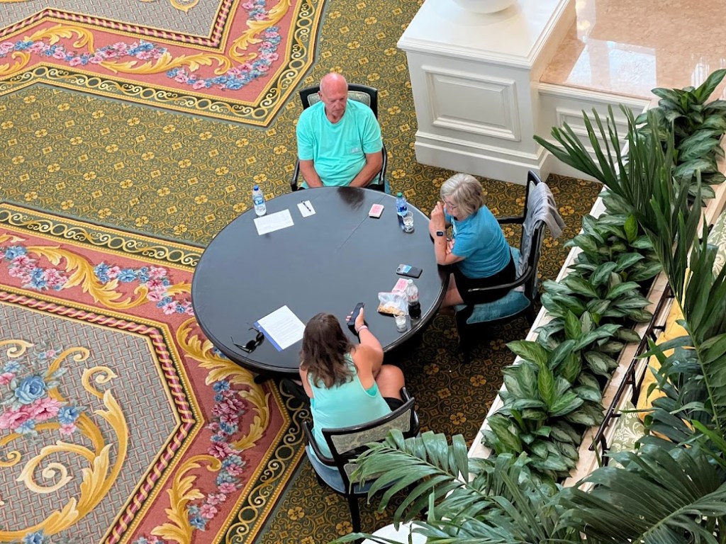 Legit living their best life. Cards, piano, Grand Floridian.