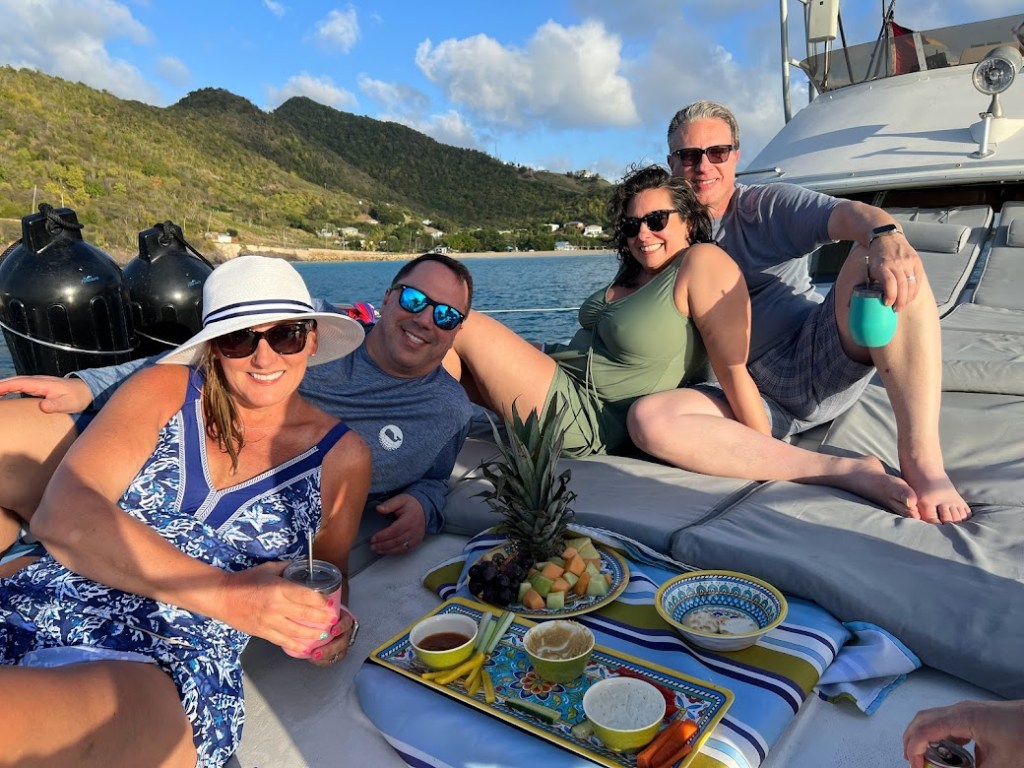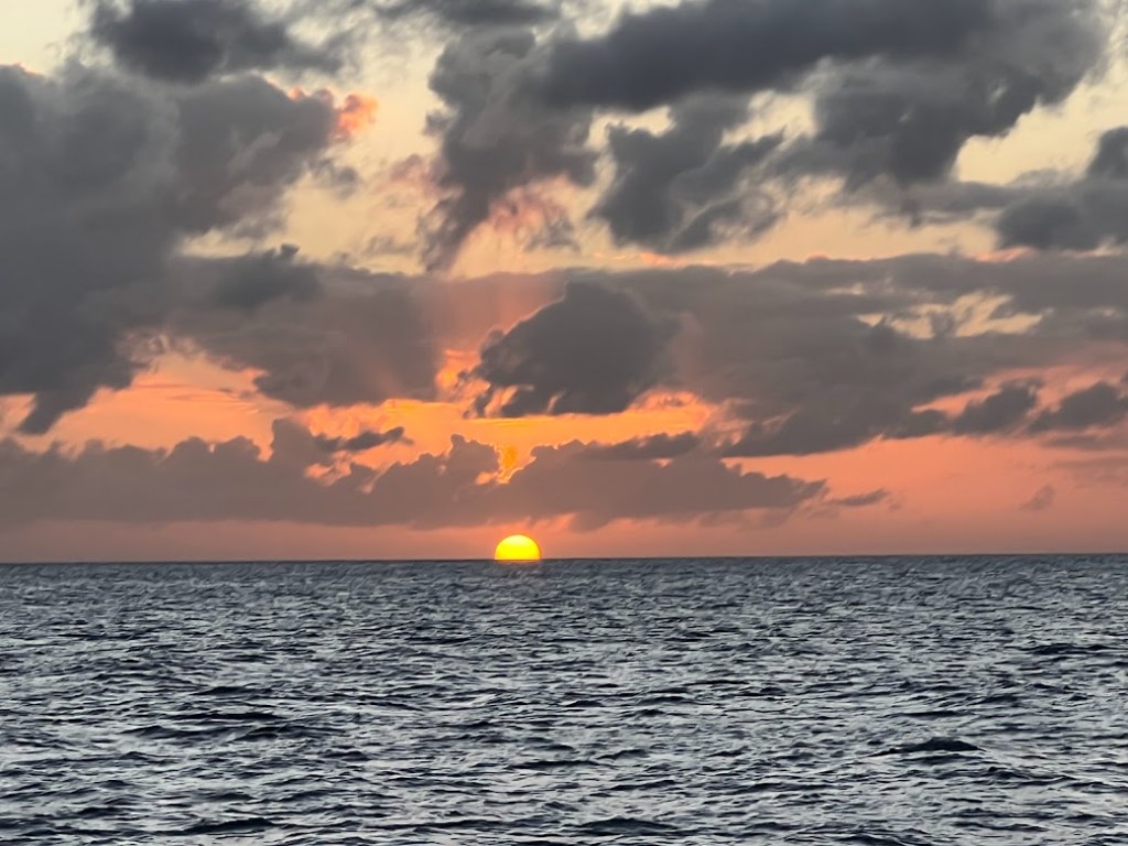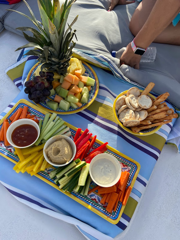 After we all made it back on the boat, Andy and Charlie put out some snacks – veggies, fruit, hummus, crackers, and what not – to get us ready for sunset. Plus of course we had some beer and some more rum punch.