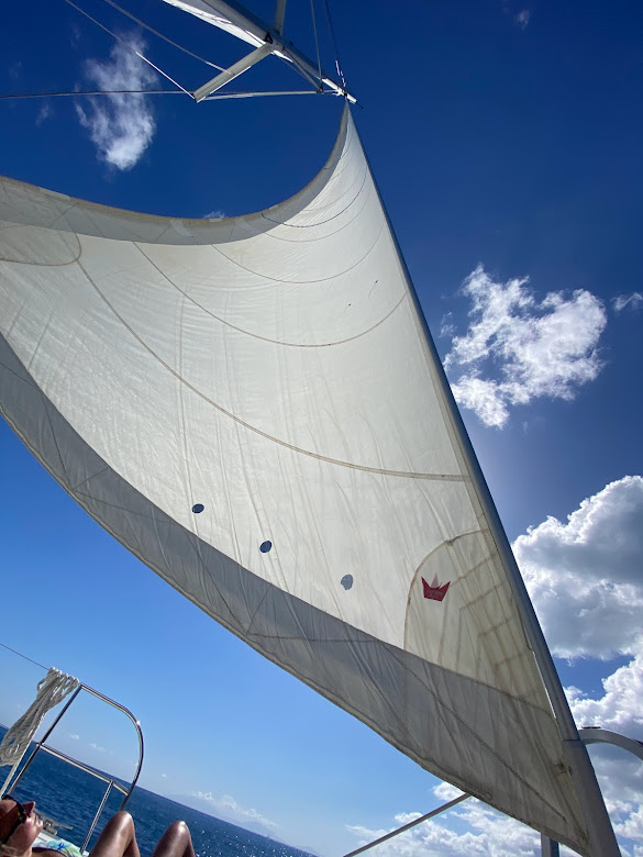We motored out for a little bit out into open waters. And then? Then the sail was raised for an all-kinds-of-relaxing trip back to Jolly Harbour.