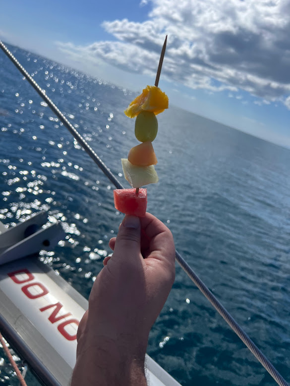 Yep, Amara came out and brought us all these delicious fruit skewers. Which was a nice thing to wake up to. And like, I still had some rum punch too. So I could balance the healthy fruit with the EVEN HEALTHIER alcohol.