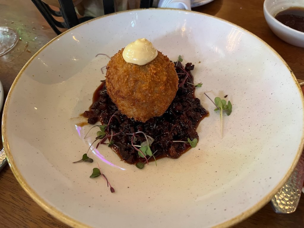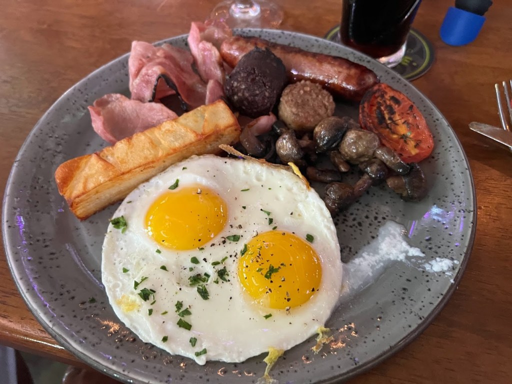 Being that we were just in Ireland, I wanted to see how Raglan Road’s Full Irish stacked up. Raglan’s consisted of Cheshire Heritage Pork Irish Banger, Black & White Pudding, Bacon, Roasted Tomato, Mushrooms & Fried Eggs with Raglan’s Double Cooked Chips.