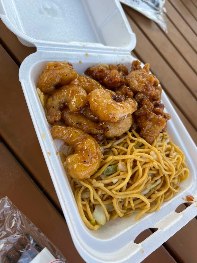 That was my meal there. My usual. Orange Chicken, Honey Walnut Shrimp, Chow Mein.
