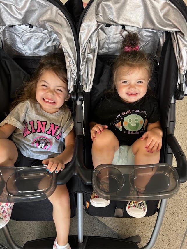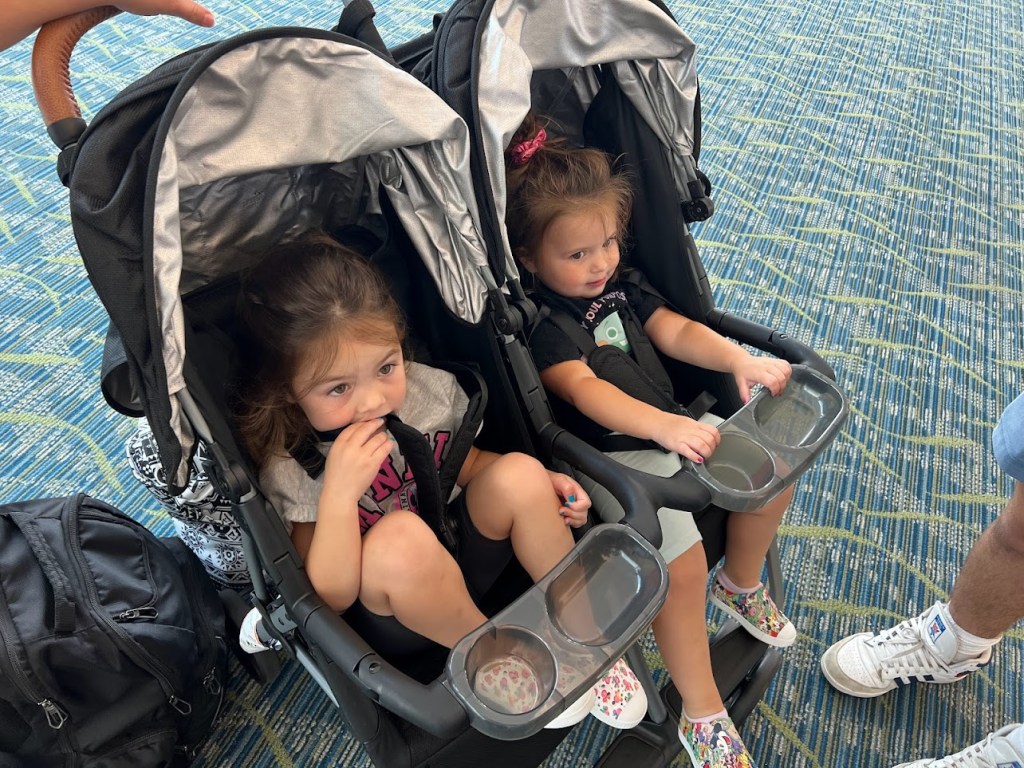 But yeah, SO many people coming today. And the excitement hit us early on as we were sent pictures like this one. Of Sophia and Scarlett in their strollers at the airport.