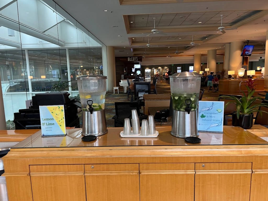 After we gathered up all the Pittmans’ bags, back to the Hyatt we went. While the Pittmans were checking in, I made use of the free cucumber and mint spa water in the Hyatt lobby.