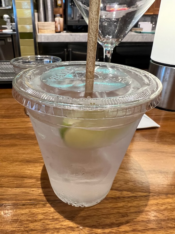 For my to-go drink, I grabbed a Tito’s and Soda to bring to the pool. So the bartender put it in a plastic cup.