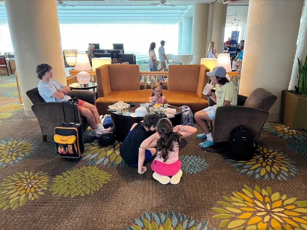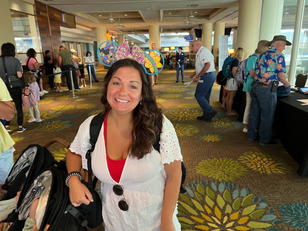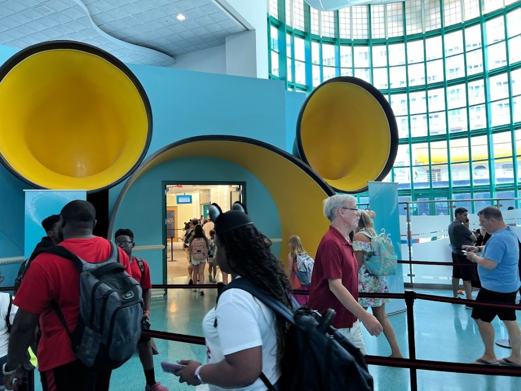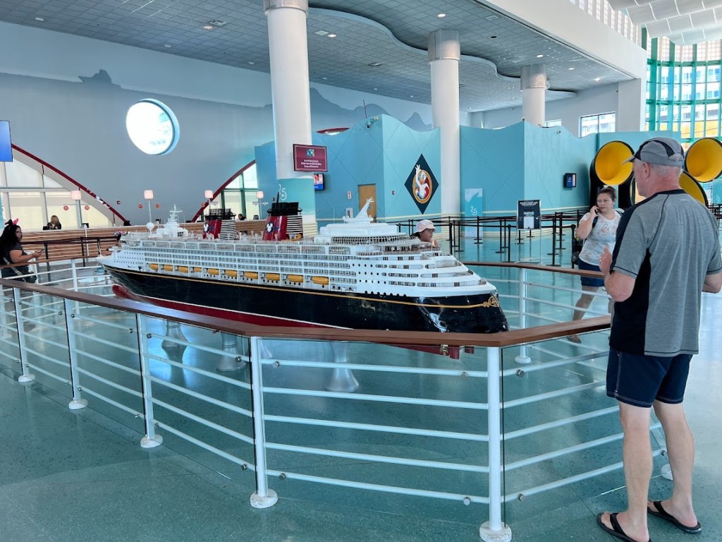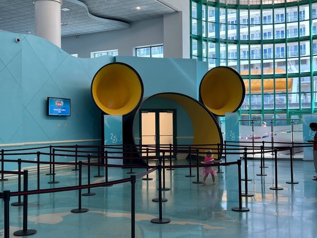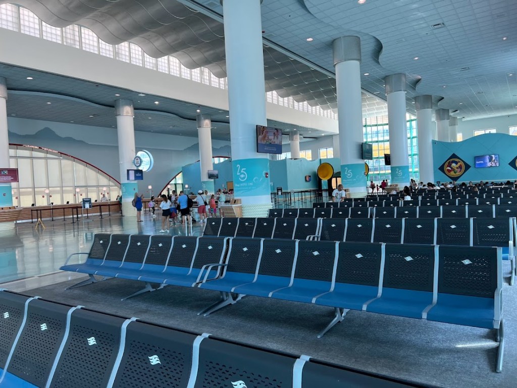 Since it was hot as crud outside, we quickly went back in after totally slaying. That was at around 10:30. We ended up hanging out in the terminal for another hour or so before they started boarding the ship. And we took that time to ensure we were connected on the Disney Cruise Line app. This allowed us to see our dining rotation and start looking at our Personal Navigator and see all the activities we could look forward to.