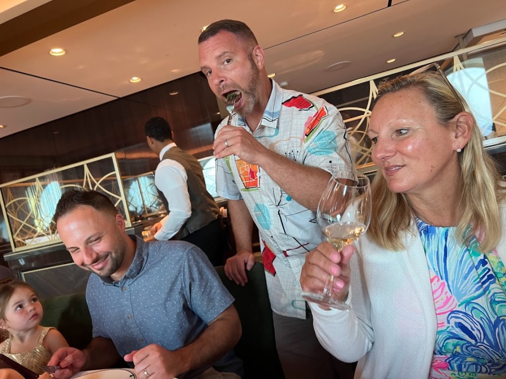 And he wasn’t the best. I get that timing is everything in these cruise dinners but he rushed us constantly and made us feel like we were a bother simply because we were a larger group. Every night, we got our food before we even saw our drinks. Which, like, is craptastic. He wasn’t great.