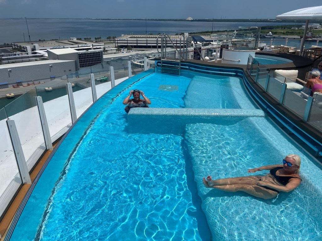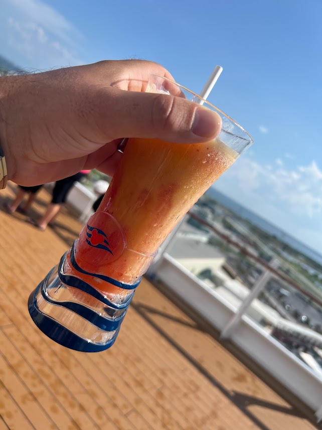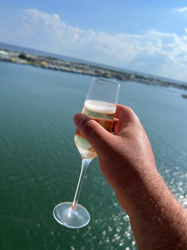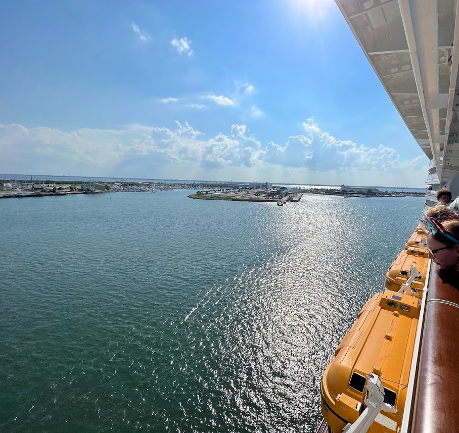 So we did have a couple carry-on bags with some stuff we might need for our first couple hours on the ship and wore our bathing suits. We also had to bring any alcohol we were taking on board with us.