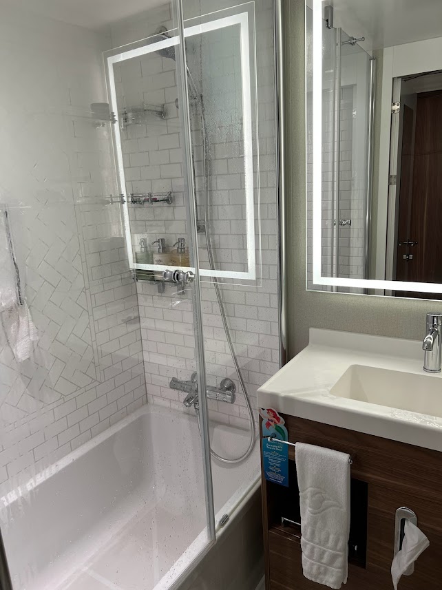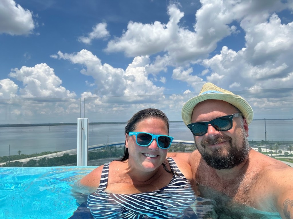 The embarkation day process at the Hyatt Regency Orlando International Airport is pretty great. When we checked in, they gave us bag tags to put on our suitcases. The bags we tagged we were instructed to leave in the room by the door. Staff would pick them up, get them transported to the ship while we were on our shuttle to the port, and the next time we’d see them would be in our stateroom.