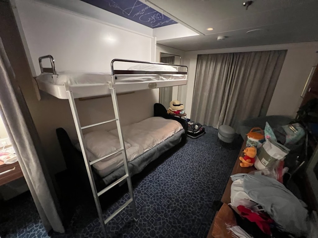 After Enchanted finished, we headed back down to our staterooms. And as I mentioned before, our stateroom attendant worked miracles. He cleaned our room for the second time today and set up the kids’ beds.