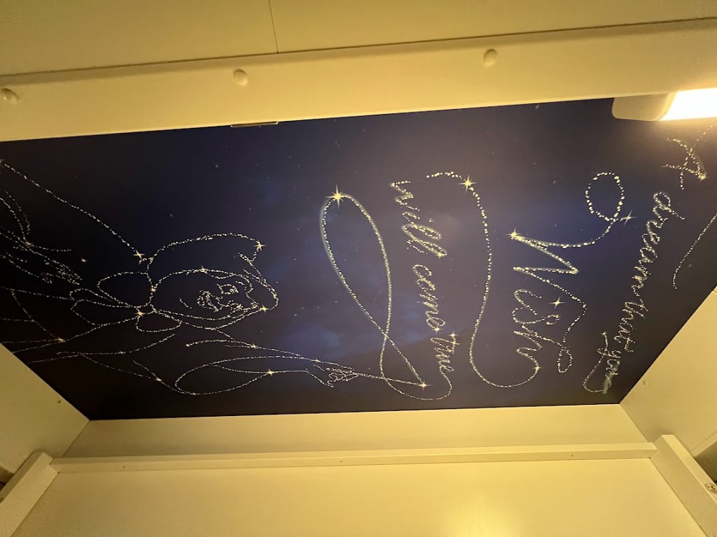 And check out the ceiling above the top bunk.