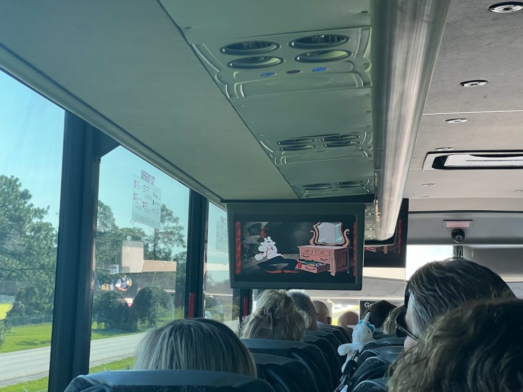 Back on our shuttle, we were enjoying some cartoons…