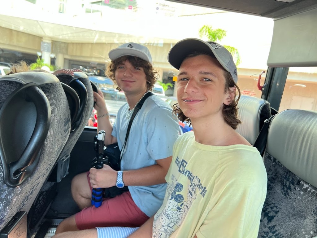 Also? While we were on our own shuttle, the O’Learys were on their own shuttle on their way to meet us at the terminal.