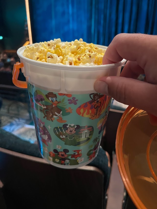 Oh and yeah, of course I bought the refillable popcorn bucket. Because, duh, I was gonna have a lot of popcorn on this trip. And, like, not only can you use that bucket on the ship but you can also use it at the parks. So it just made sense.