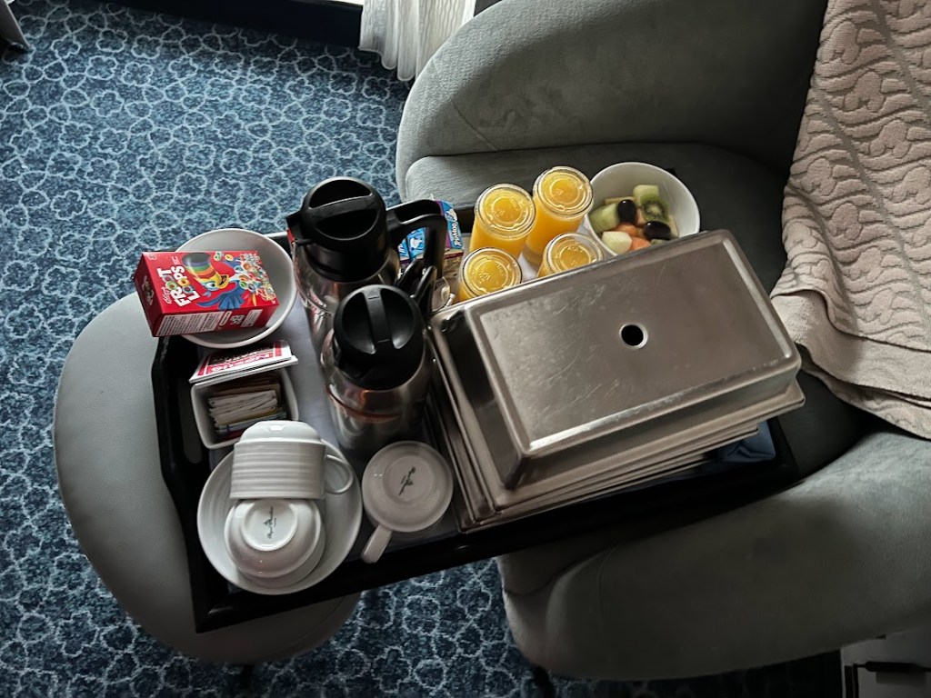 Before I get into the full-on Day 4-ness of Day 4, I should mention our morning would not have been possible without some prep on Day 3. Last night (again, Day 3), we filled out the card in our drawer and put in our order for room service breakfast to be delivered in the morning. After filling out said card with our order and the time we were hoping to have our breakfast delivered, we hung it on our door and voila!