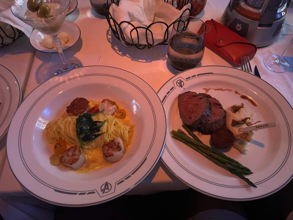 As we were eating our entrees, Act 3 of the show began. And this was sort of the climax of the whole story. Ultron shows up, he wants some of that yummy Quantum Core technology and Ant-Man and the Wasp have to call in some assistance. So they reach out to Captain Marvel, Captain America, and Ms. Marvel.