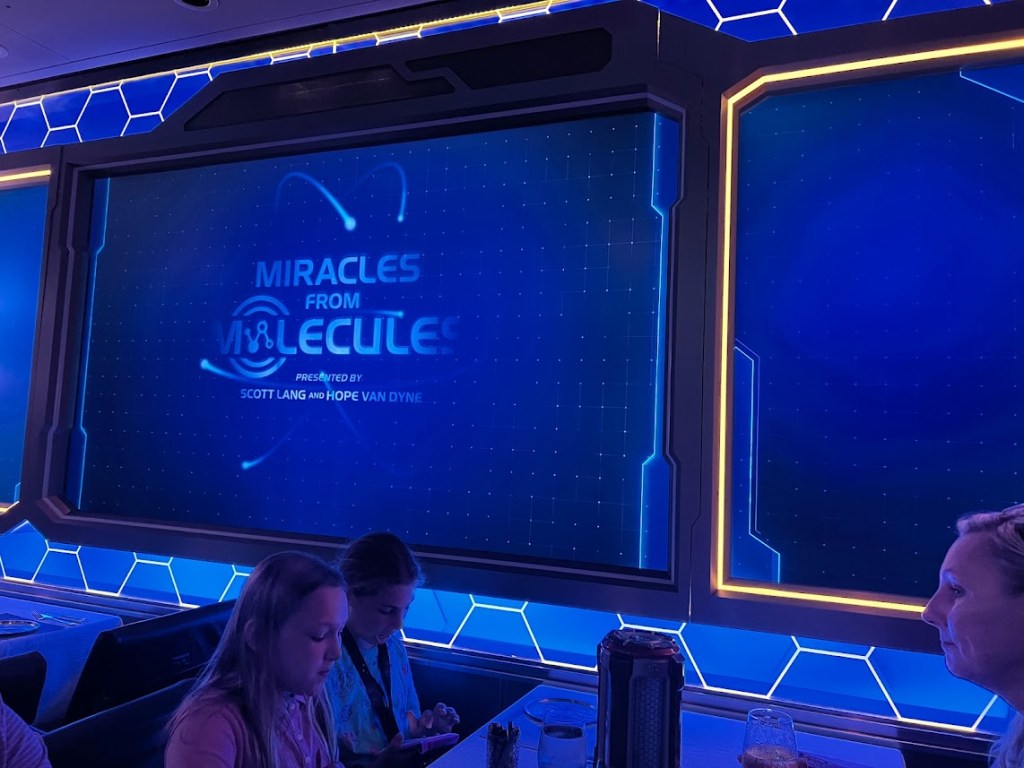 After our waitstaff took our orders, Act 1 of the entertainment began. A majority of the show during the meal takes place on the screens all around the dining room.